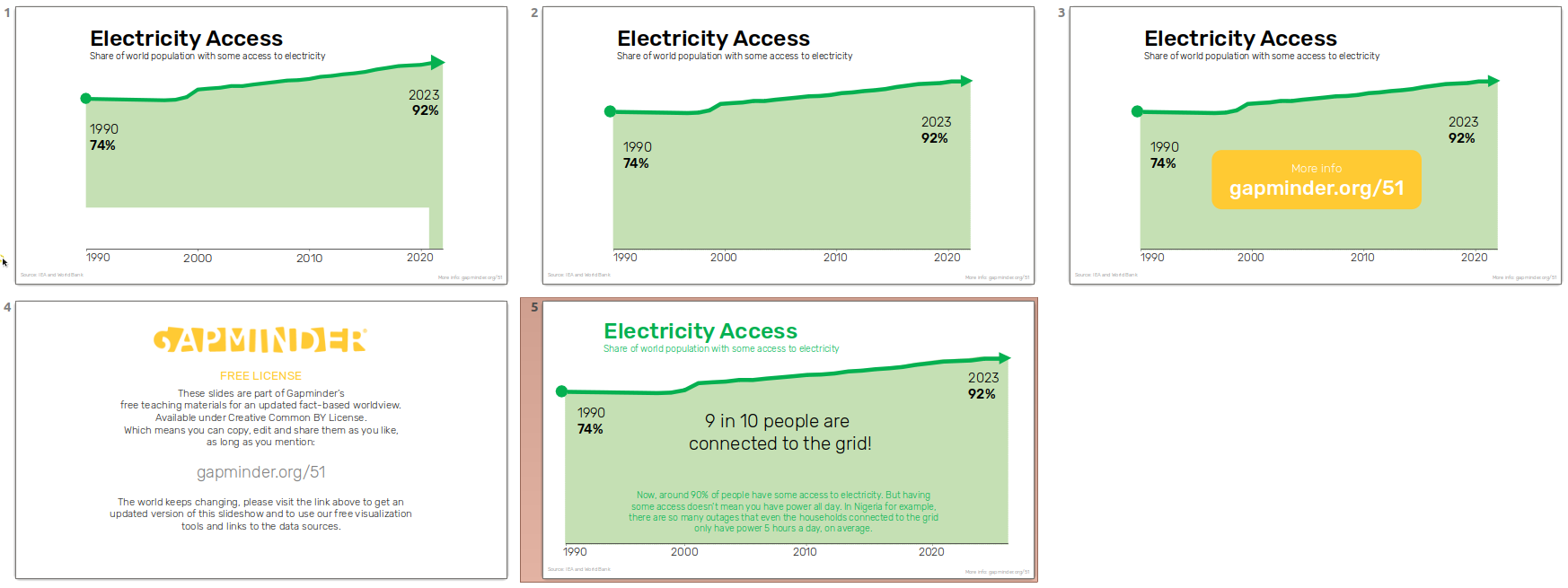 Here you can download the slideshow. You can see the data behind this fact here. This teaching material is free to use and modify. Please mention gapminder.org/51