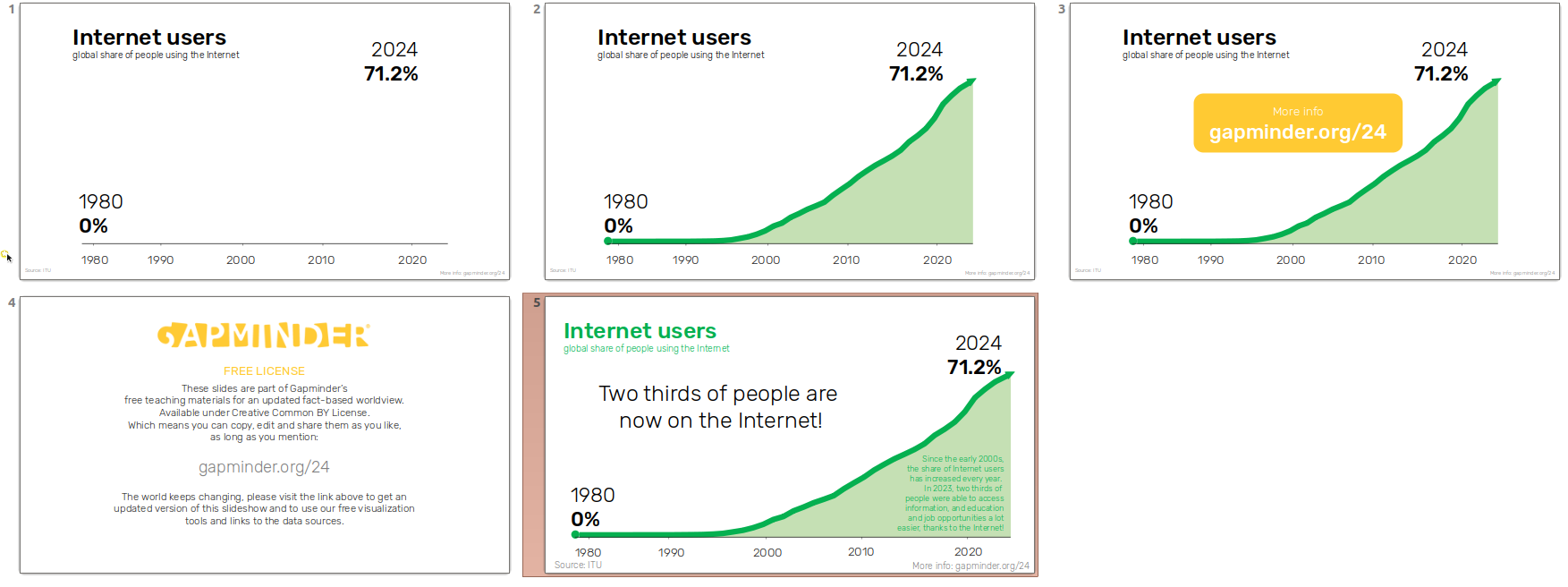 Here you can download the slideshow. You can see the data behind this fact here. This teaching material is free to use and modify. Please mention gapminder.org/24