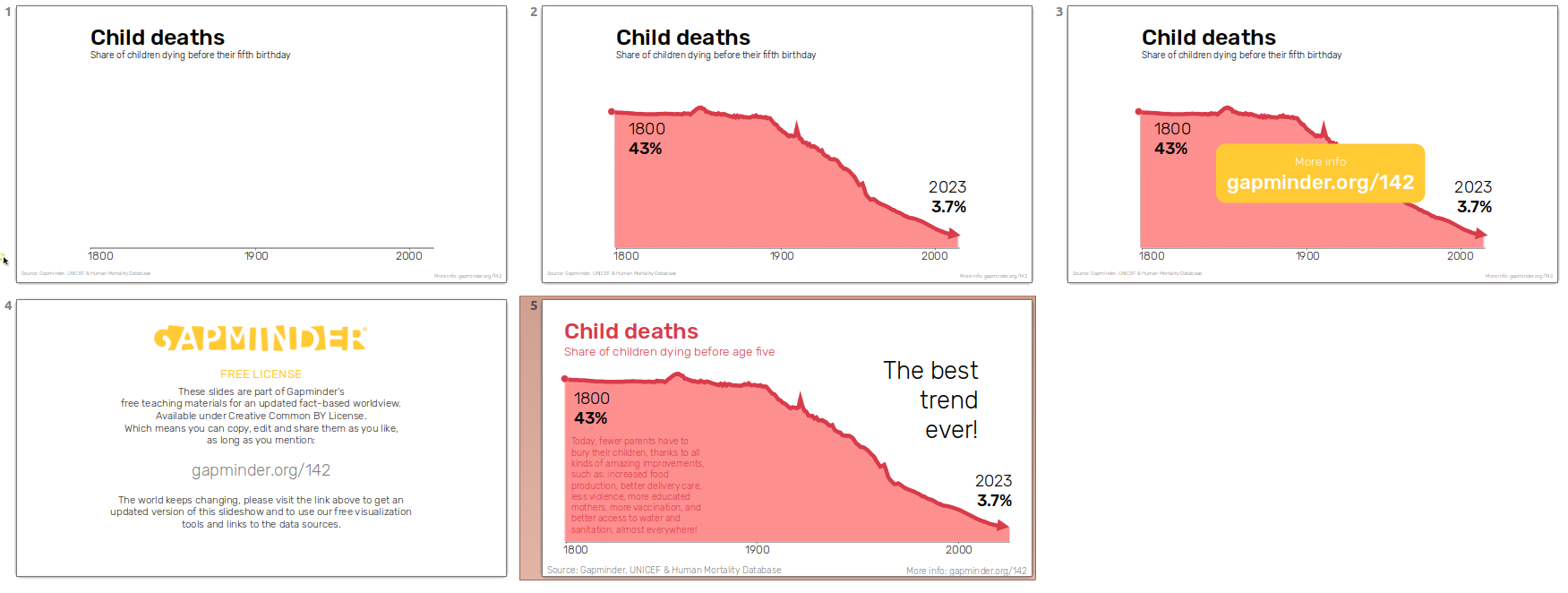 Here you can download the slideshow. You can see the data behind this fact here. This teaching material is free to use and modify. Please mention gapminder.org/142