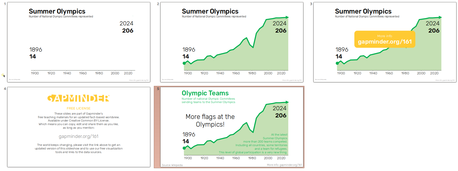 Here you can download the slideshow. The data can be found here. This teaching material is free to use and modify. Please mention gapminder.org/161